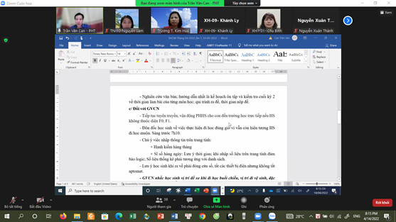 Buổi sinh hoạt chuyên môn tháng tư – lần thứ nhất của trường THCS Kiêu Kỵ đã diễn ra theo hình thức trực tuyến vào 20h00 ngày 14/04/2022. Buổi họp do đồng chí Trần Văn Can – Phó hiệu trưởng nhà trường chủ trì.