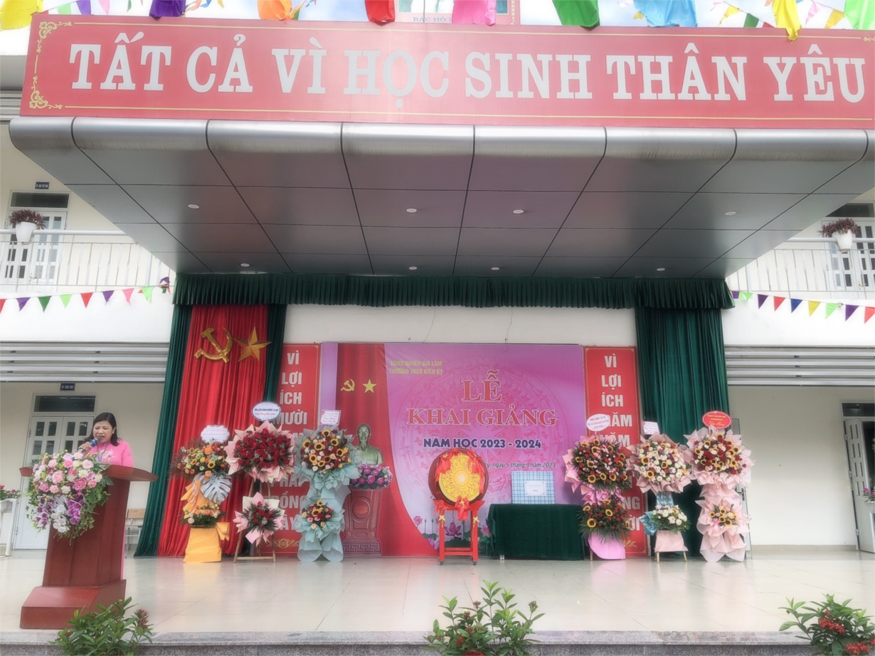 Hòa trong không khí thiêng liêng của cả nước kỉ niệm 78 năm Cách mạng tháng Tám và Quốc khánh 2/9, thực hiện nhiệm vụ năm học 2023-2024, sáng ngày 5/9/2023 trường THCS Kiêu Kỵ đã long trọng tổ chức lễ khai giảng năm học 2023-2024. Tham dự lễ khai giảng, về phía đại biểu huyện có ông Đào Đức Minh, Huyện ủy viên, Phó trưởng ban tuyên giáo huyện ủy huyện Gia Lâm; về phía đại biểu xã có ông Phùng Đắc Quản, Bí thư Đảng ủy xã, ông Nguyễn Văn Thanh, phó chủ tịch UBND xã Kiêu Kỵ; đại diện nhà máy Z176, thượng tá Nguyễn Thị Hải Vân đã đến chúc mừng nhà trường. Bên cạnh đó, trung tâm ngoại ngữ Oasinhton, công ty du lịch Cánh Buồm Xanh và công ty du lịch Ánh dương cũng gửi hoa chúc mừng nhà trường. Thay mặt Thượng tọa Thích Thanh Tuấn, Phó tổng thư kí, chánh văn phòng trung ương giáo hội PHVN, đại đức Thích Thanh Đức và sư cụ Thích Diệu Ngân chùa Minh Ngộ đã đến tham dự buổi lễ khai giảng; cùng với sự có mặt của đại diện các bậc phụ huynh học sinh, các thầy cô giáo và các em học sinh trong toàn trường. Đặc biệt trong năm học 2023- 2024 nhà trường được chào đón 289 em học sinh lớp 6.