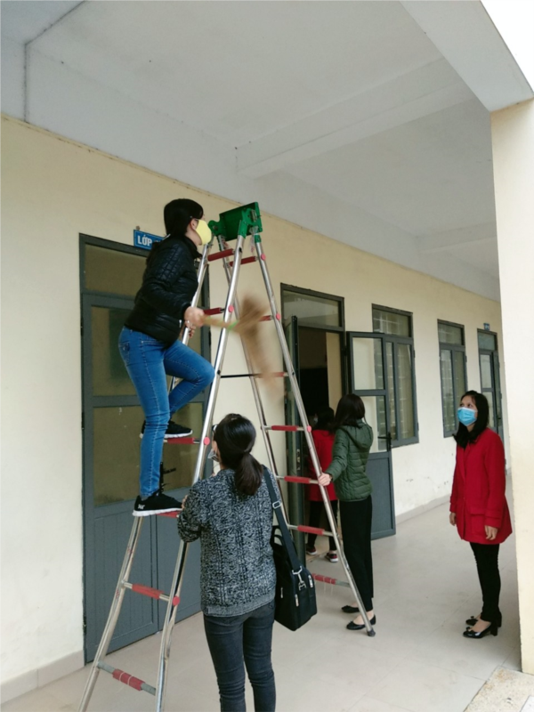 Thực hiện công văn toàn thể CBGV-CNV nhà trường đã tham gia công tác khử khuẩn và vệ sinh môi trường lần 2 trong 2 ngày 7 và 8 tháng 2. Từ trong lớp học, bàn ghế, bảng, cửa, đồ dùng học tập ra ngoài hành lang đến bồn hoa cây cảnh, khu hiệu bộ và các phòng chức năng bộ môn, nhà để xe giáo viên, học sinh đến khu vực quanh trường... đều được lau dọn đảm bảo sạch sẽ thông thoáng. Những công việc này sẽ tiếp tục được duy trì thường xuyên, hiệu quả trong thời gian tới. Theo công văn thời gian tổng vệ sinh đợt 3 sẽ triển khai vào thứ 7, chủ nhât (ngày 15-16 tháng 2 năm 2020). Mong rằng dịch bệnh sẽ nhanh chóng được đẩy lùi. Ngày 7 tháng 2 năm 2020 đồng chí Đoàn Hoa đại diện Phòng giáo dục trực tiếp phụ trách khu vực đã đi kiểm tra nhà trường.